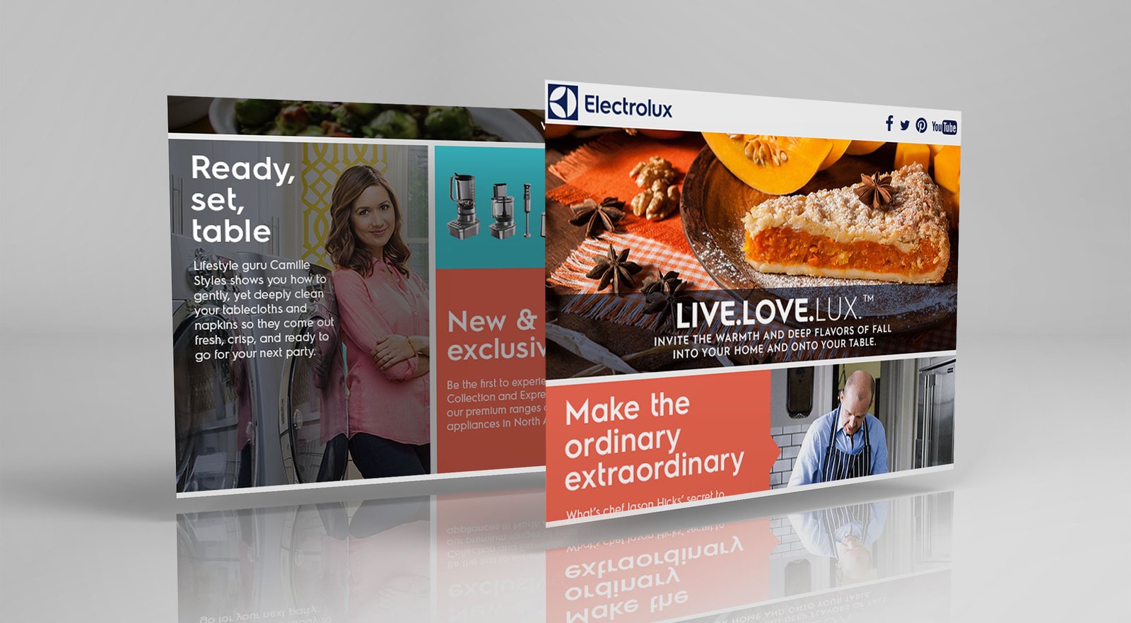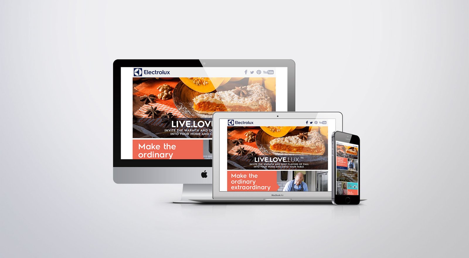 Electrolux This fall promotion was targeted towards web and mobile users. It was designed to be warm and inviting while showcasing the full product line.